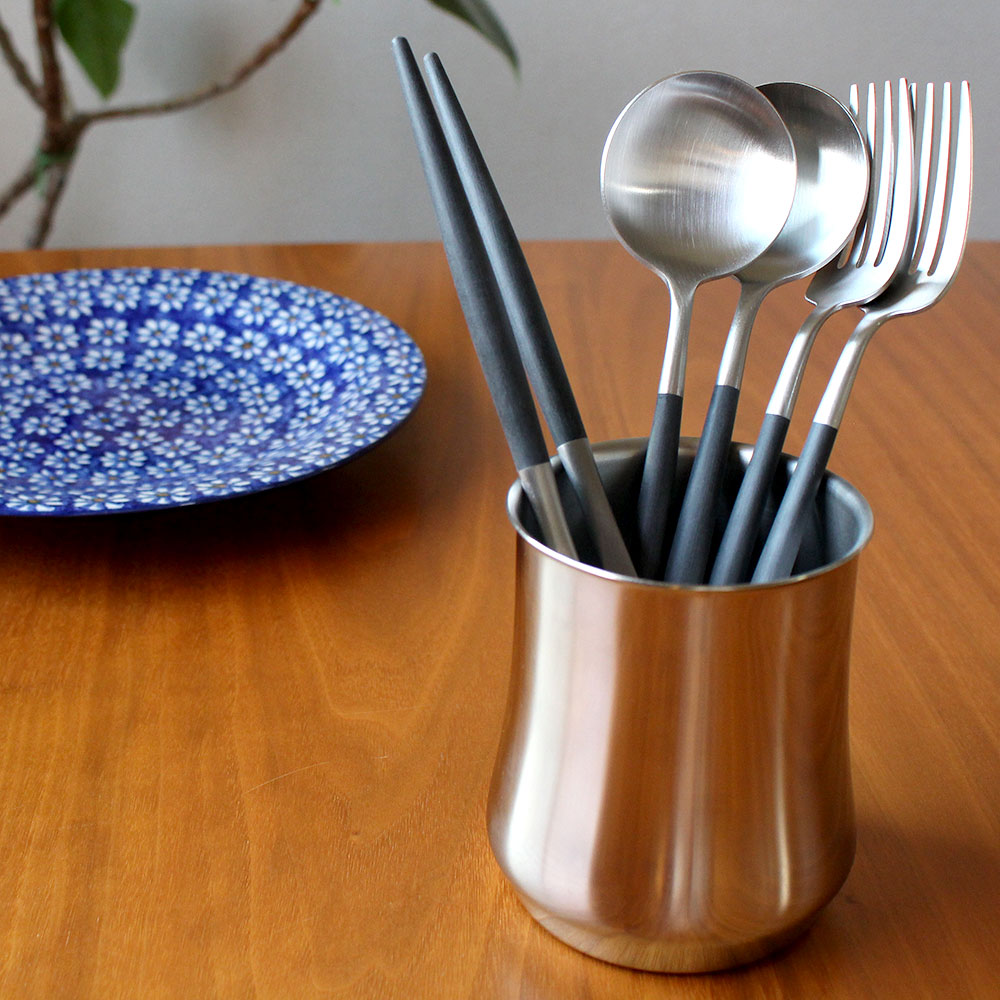 ぼってりとした形状が、カトラリーをいれても倒れにくくてカトラリーサーバーとして使えます。